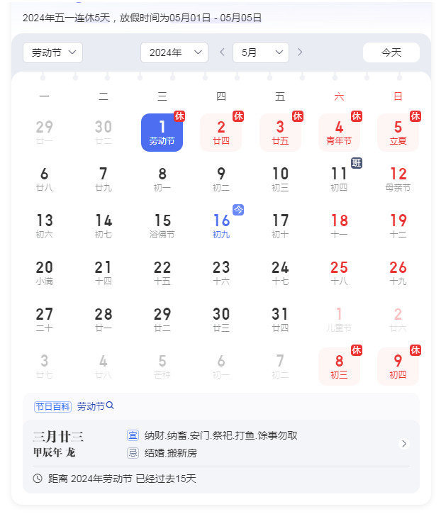 根据国务院办公厅通知精神,2024年劳动节放假安排为: